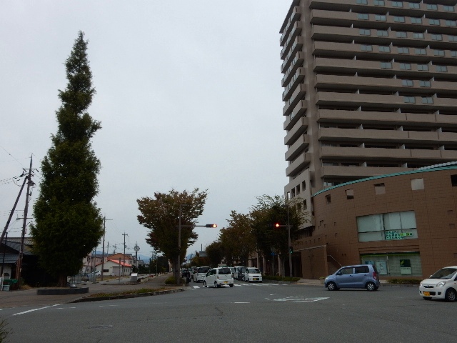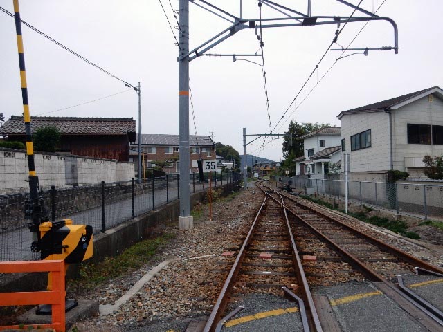 幹線道路(県道17号線)との交差点には、踏切の踏板の跡が残って