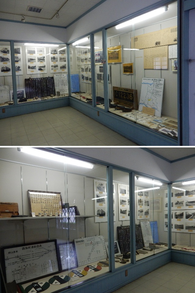 奥の方は展示スペースで、お約束の鉄道グッズや古い写真が数多く
