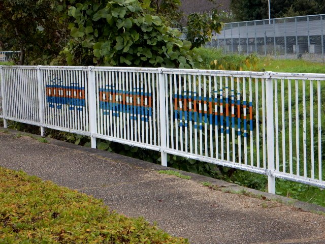 歩道の柵に列車のデザインの物が使われており、コレが辛うじてココが