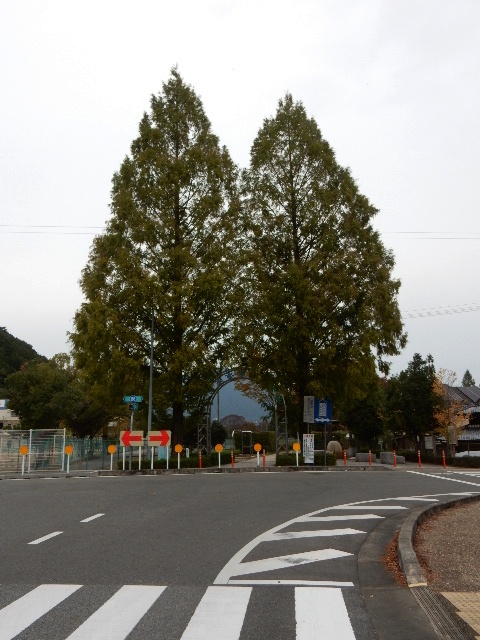 その真向かいに大きなポプラ(だと思う)の木が2本上植えられた地点