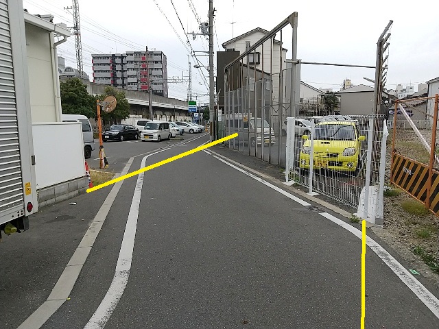 あびこ筋を越えた所からは資材置き場のような感じでした。私有地