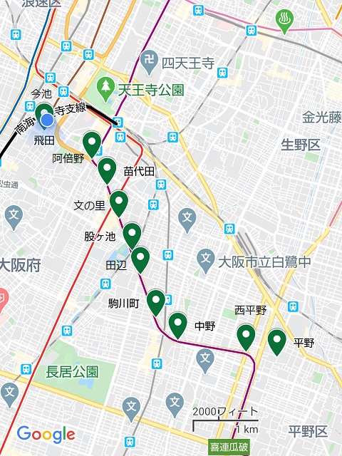 の方が近いから、南海平野線の方はニアミスで知らない状況ですな。