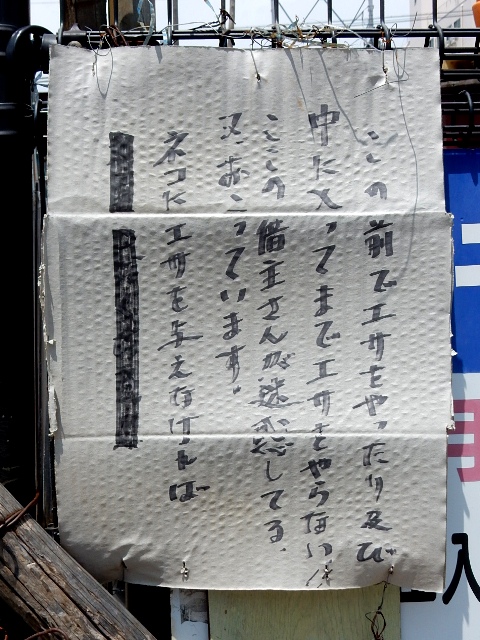 貼り紙と言えばお約束が猫関係。猫と人間がほぼ同じような生活