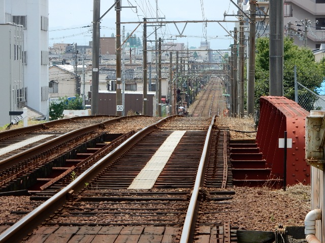 今池駅から南の住吉大社方向へ向かうと、線路は30‰の下り坂に