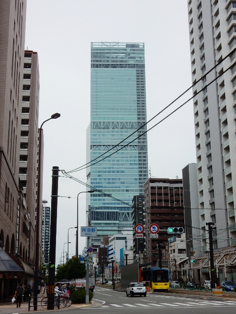 交差点から北側を見ると、現在はあべのハルカスが目立つコノ通り