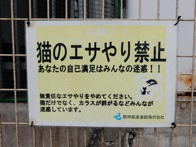 「猫のエサやり禁止」の貼り紙があると言う事は付近に猫が居ると言う