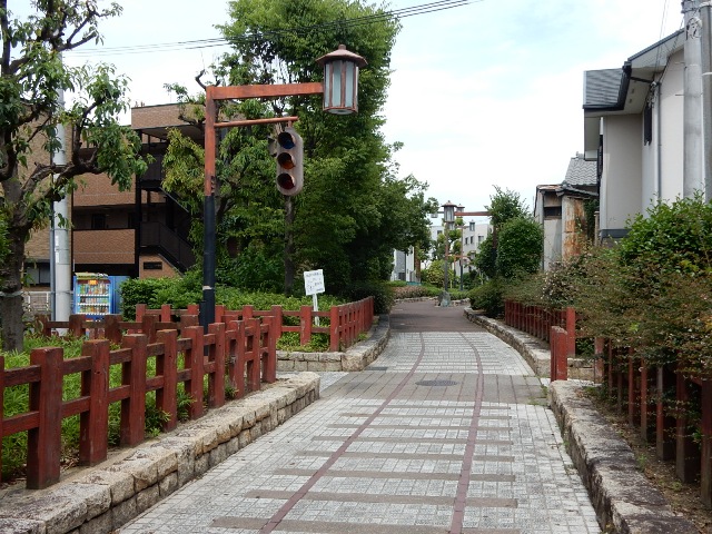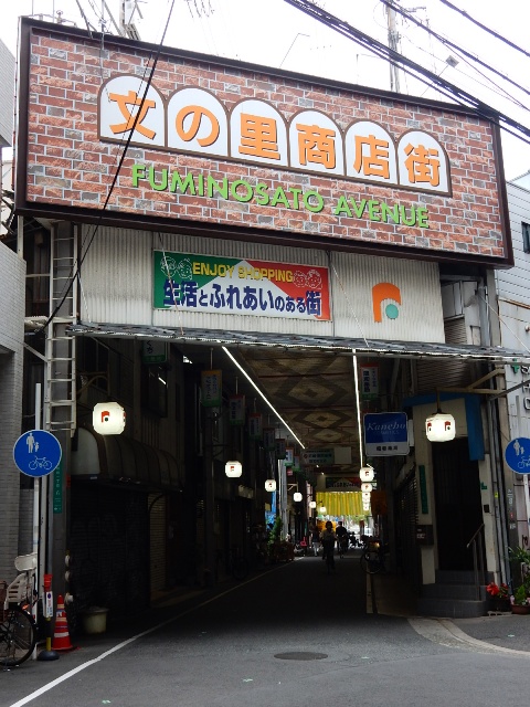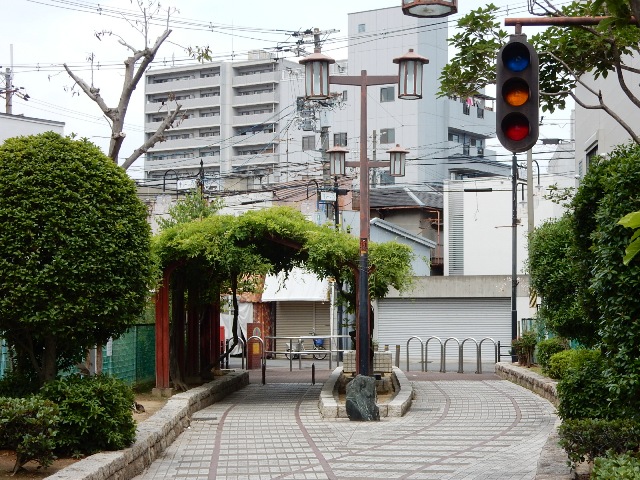 堺筋を渡って線路があった位置と同じ形でカーブした路地を歩いて