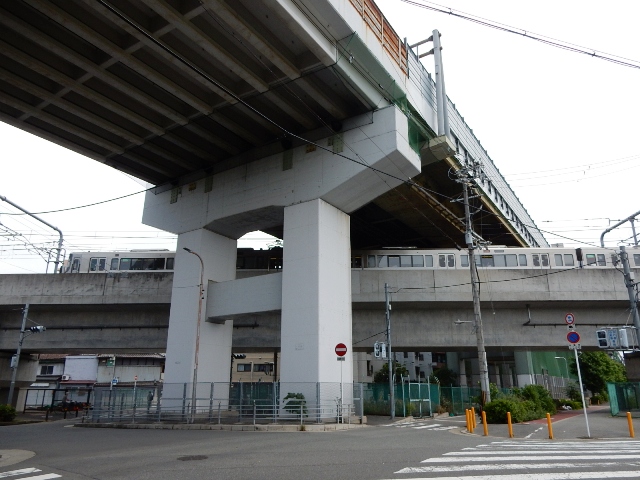 大部分は阪神高速14号松原線の高架下を通る事になります。