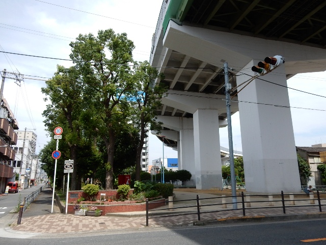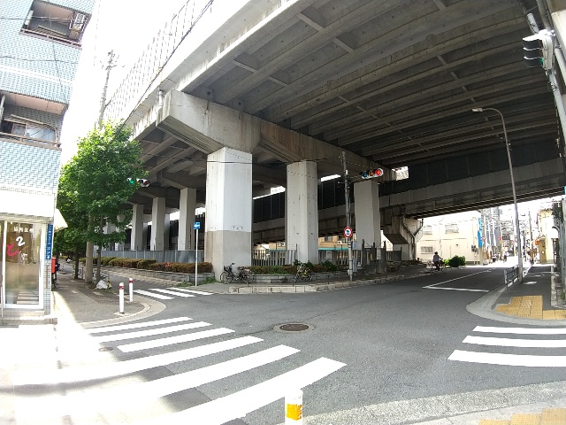 頭上に被さってくる道路は阪神高速の14号松原線です。