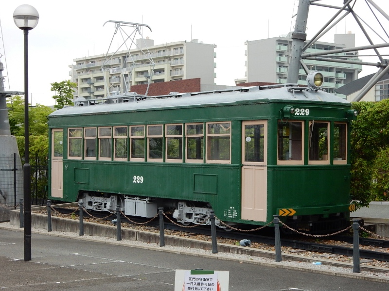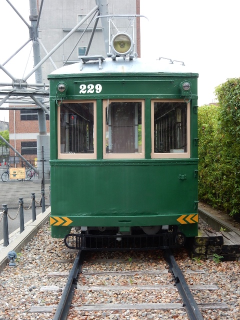 ココにあるのはモ205型のうちの229号車。平野線跡地の終点付近に