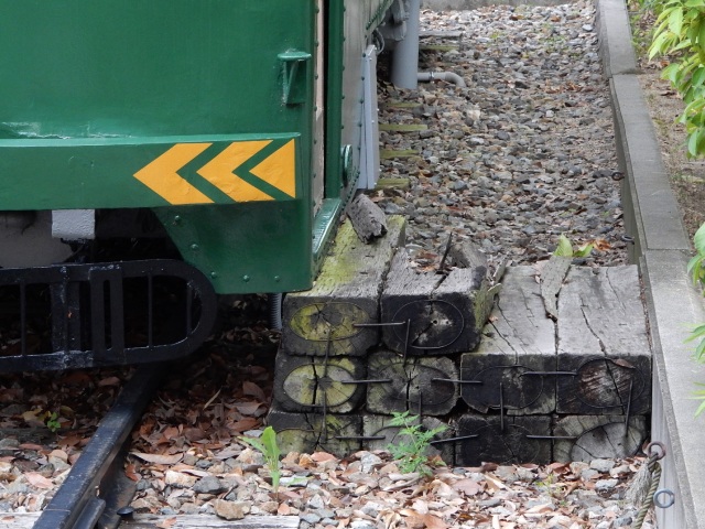 車内は非公開のようですが、一応は枕木を積んだ階段がありますね。