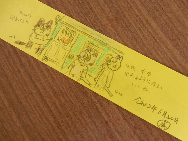 七夕の前だったので施設の一端に笹飾りと短冊を書くコーナーが