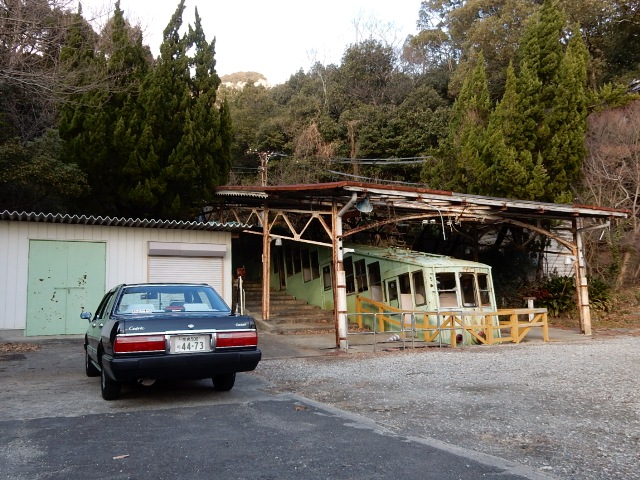 私の目的はケーブルカーの山上側の廃駅です。生憎と駐車場からは