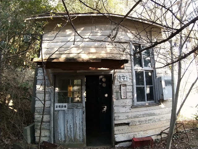 敷地の脇には配電室らしき設備も残ってました。