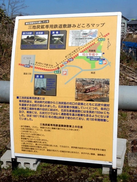 付近には廃線跡の紹介に特化した看板もありました。大牟田市側