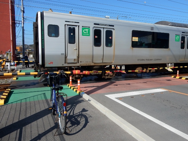 迫ってますので、また道路を迂回して鹿児島本線の踏切に出ました。
