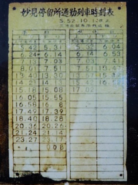 現役当時の資料として、昭和52年の物だと言う発車時刻表の写真が