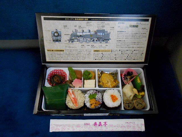そろそろ海産物系にも飽きてきたので、こんな感じで「SL弁当」。