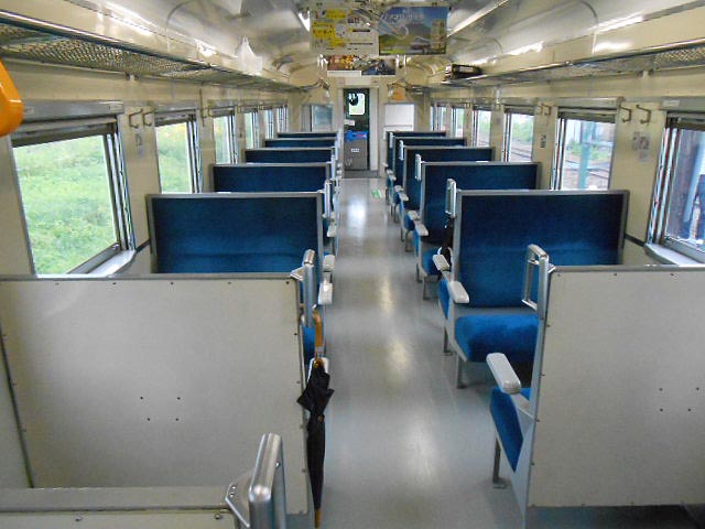 朝とは言え下り列車なので空いてます。