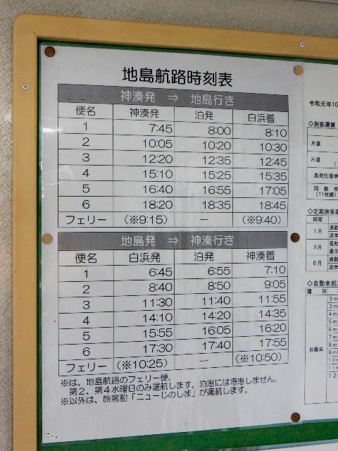 船は日に6往復と月に2度、自動車を運べるフェリーが走るようです。