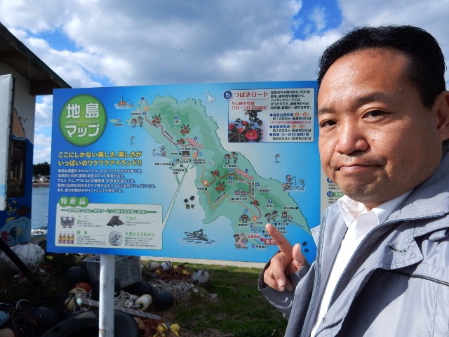 島の案内図によるとやはり2箇所に集落があり、ウニやワカメなどの