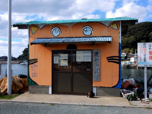 …渡船の待合所は猫のデザインになってますが、猫が名物だとは
