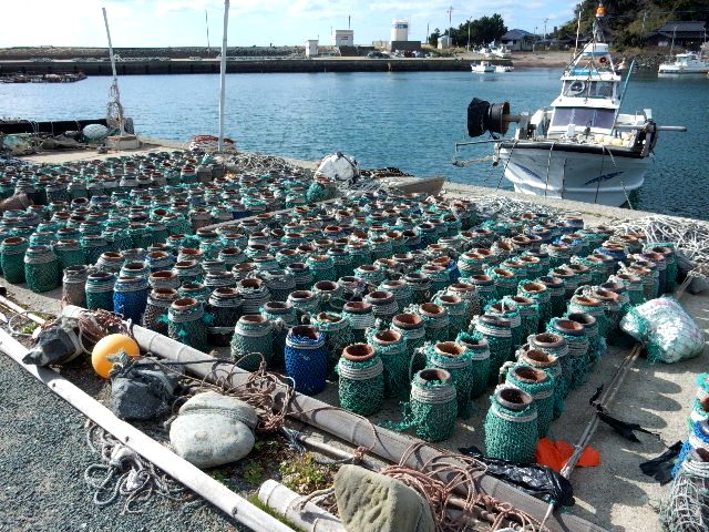 やはり漁業の島らしく、港には漁船が居てタコつぼらしき物が並べて