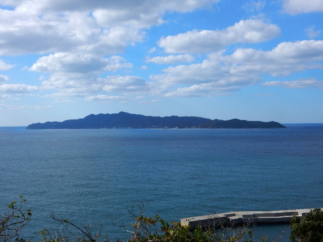 県道を歩いて最も標高が高い所へ来たら、隣の大島がよく見えました。