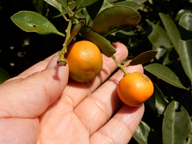 直径2cmほどの小さな柑橘系の実は金柑(キンカン)ですな。
