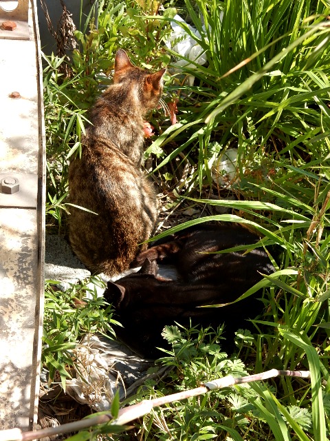 駅前の敷地を探してみると草むらの中に2匹ほど猫が確認出来ました。