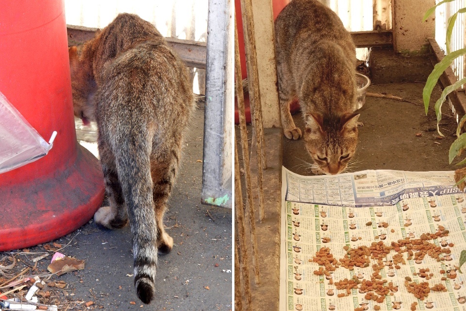 前回は冬場&雨天だったので猫は雨宿りしてるのが1匹だけでしたが、